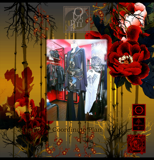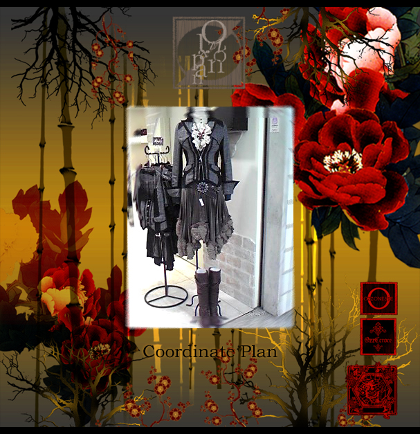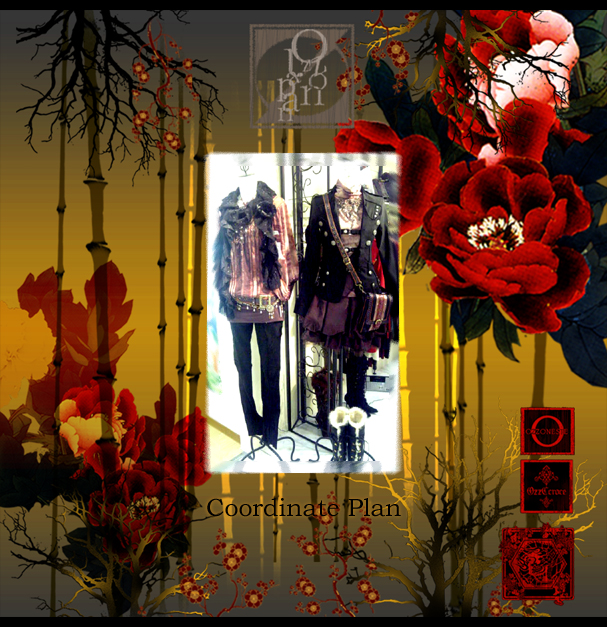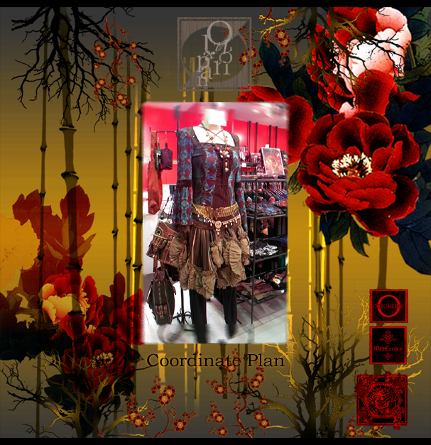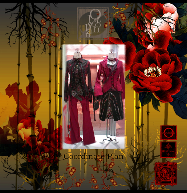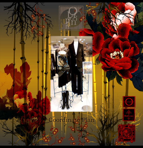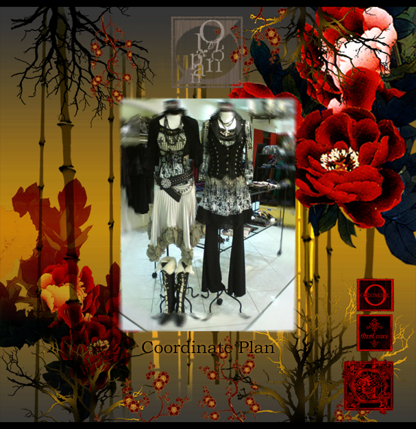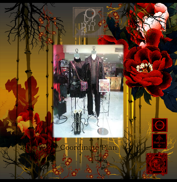 左/CROCE無地シリーズスカート32626黒¥7900- ONESTE 薔薇雑貨バッグ2031919ワイン¥7500- 右/CONTE ドクロストライプコート2035304ワイン¥16800- カットソー2035105灰¥6900- ドクロワンポイント刺繍パンツ2035703黒¥9800-