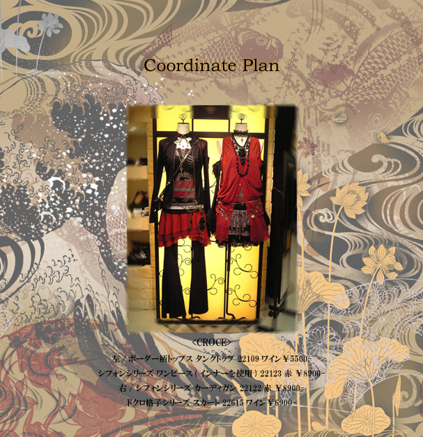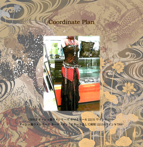 ↑CROCEメッシュ龍ラメシリーズ キャミソール22131ワイン¥4900-