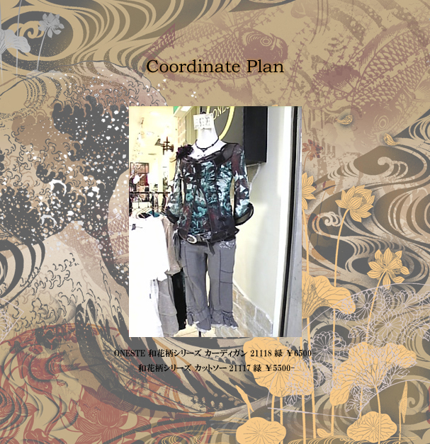 左/ONESTEフリル刺繍シリーズ カットソー21129緑¥7900-