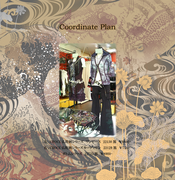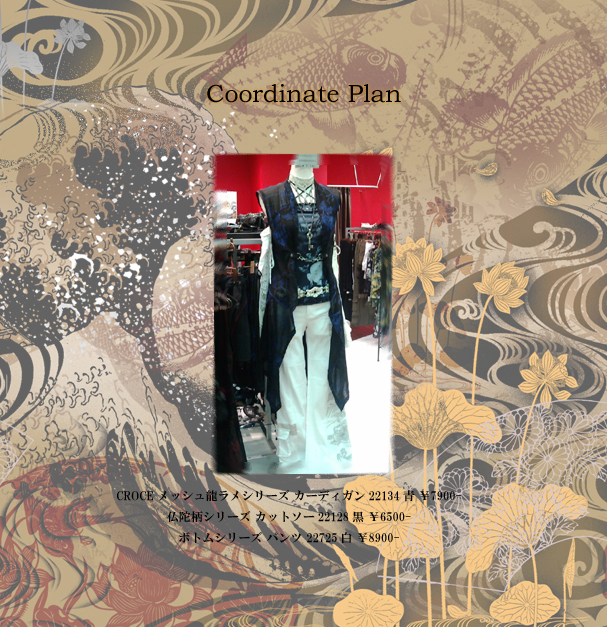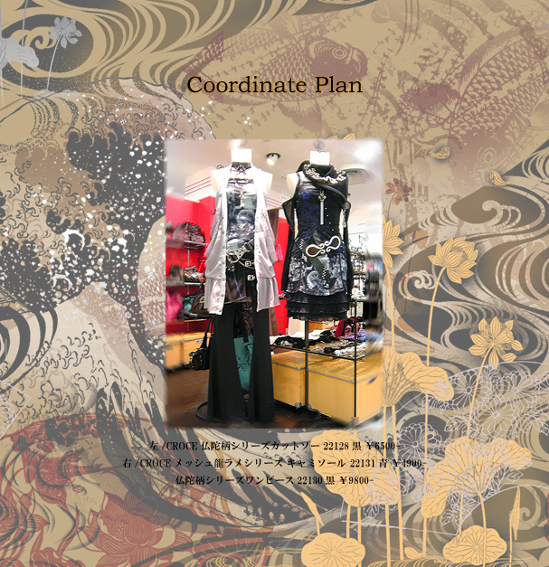 ↑左/CROCE 仏陀柄シリーズカットソー 22128黒¥6500-